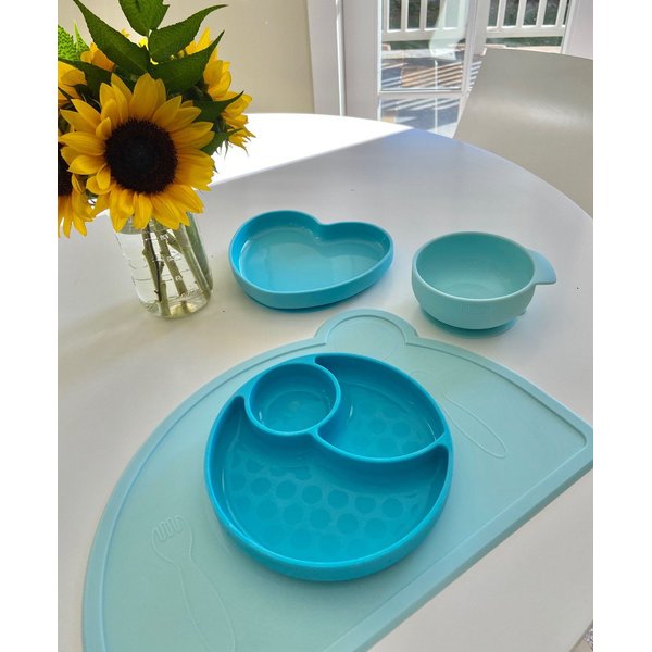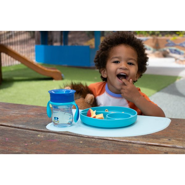 Wykonana z trwałego, odpornego na uszkodzenia i nie pochłaniającego zapachów silikonu mata zabezpieczy stół przed jedzeniem. Twoja pociecha będzie mogła spożywać posiłki w bardziej komfortowych i higienicznych warunkach. Mata jest łatwa do mycia ręcznego, ale możesz także użyć zmywarki. Zabierz ją ze sobą w podróż, aby maluszek miał czyste miejsce do jedzenia w restauracji, na kempingu i w domu Twoich przyjaciół. Przy projektowaniu tego produktu kierowano się metodą Montessori. Obecne na macie wytłoczenia symbolizujące talerz, kubek i sztućce pomogą maluszkowi w nauce właściwego ustawienia zastawy podczas każdego posiłku.