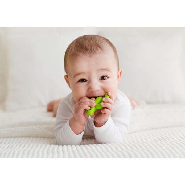 Wykonany został z wytrzymałego i całkowicie bezpiecznego dla maluszków silikonu. Posiada delikatne, zróżnicowane faktury z wypustkami masującymi dziąsła. Możesz go dezynfekować przed podaniem dziecku. Jego ciekawy kształt i kolor przemawia do wyobraźni dziecięcej, a wielkość będzie odpowiednia dla małych rączek.