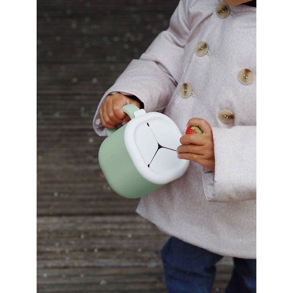 Model ten idealnie sprawdzi się w podróży i domu. Możesz podać go maluszkowi, kiedy tylko będzie wystarczająco duży, aby go trzymać. Bezpieczny do używania jako przenośny pojemniczek na przekąski, takie jak chrupki, owoce lub warzywa. Maluszek może samodzielnie sięgać po wszelkie pyszności skryte we wnętrzu kubka. Praktyczna pokrywka z rozcięciem zapobiega wysypaniu zawartości, ale jest jednocześnie bardzo bezpieczna dla dziecięcych dłoni. Antypoślizgowy spód zapobiega przesuwaniu się kubka na stoliku. Lekki, łatwy do trzymania i praktyczny kubeczek podbije serce każdego maluszka.