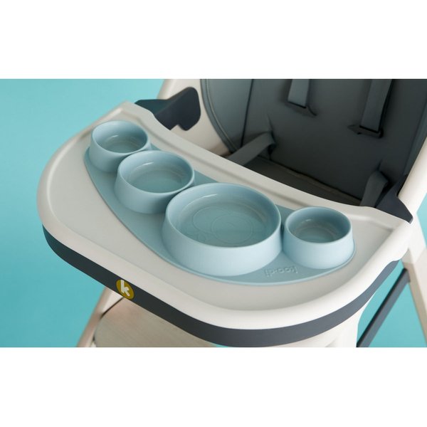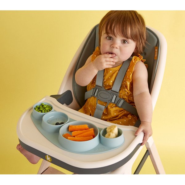 Silikonowy talerzyk dla twojego malucha od Koo-di to idealny produkt do pierwszy posiłków. Specjalnie zaprojektowany talerzyk posiada wyższe tylne ścianki oraz płytsze przednie by ułatwić dziecku nabieranie podczas jedzenia. Dzięki czterem przegródka talerzyka odpowiednio podzielimy żywność.