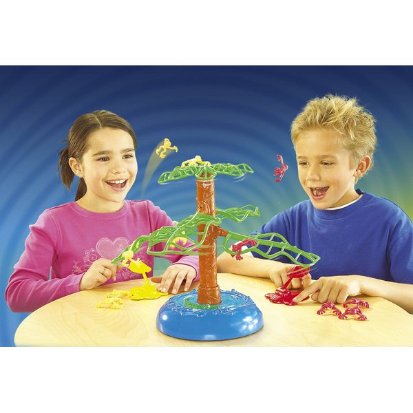 Użyj wyrzutni aby żabka wskoczyła na drzewo, Drzewo się trzęsie a żabki spadają - wygrywa ten, którego żabki najdłużej utrzymają się na drzewie.