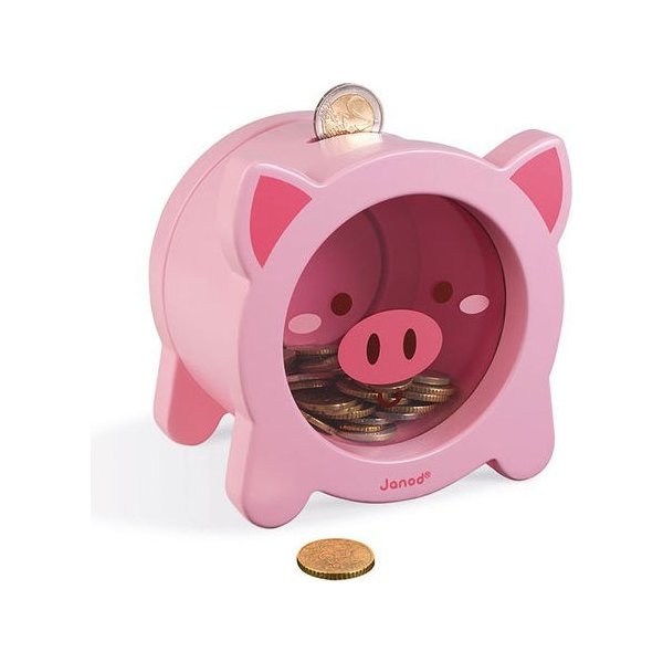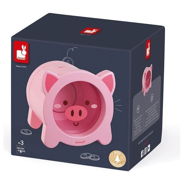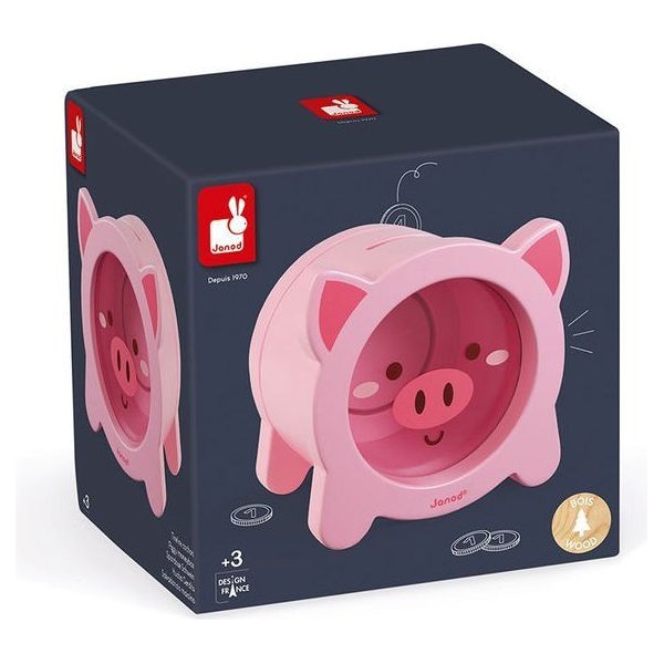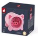 Urocza skarbonka świnka od Janod posiada oryginalny wygląd, który z pewnością będzie stanowił idealny dodatek do pokoju dziecięcego. Świnka o kształcie tuby z otwieranym na magnes tyłem i przeźroczystą buźką pozwoli na zbieranie maluszkowi swoich pierwszych oszczędności. Zapakowana została w ozdobne pudełko co sprawia, że świetnie sprawdzi się jako prezent.