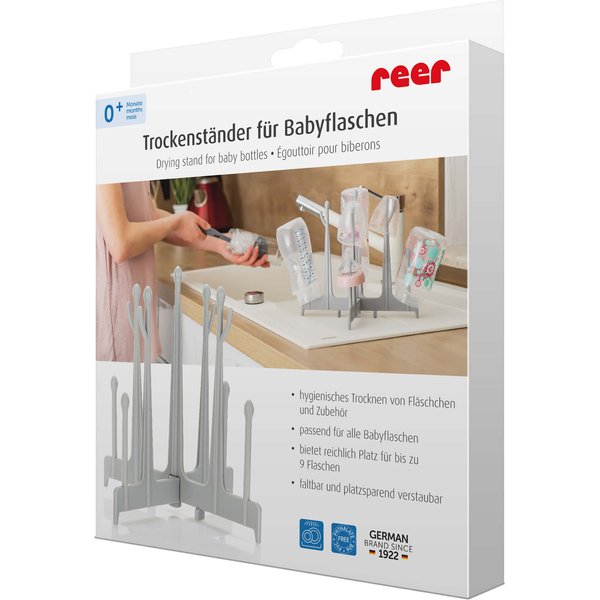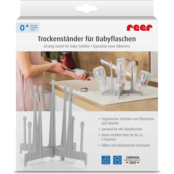Składana suszarka, ociekacz do butelek, smoczków marki Reer to gadżet niezbędny w domu każdego maluszka.
