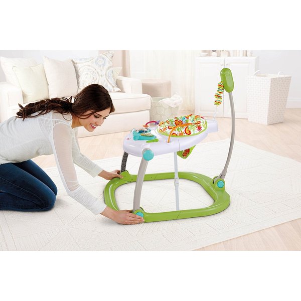 Maluch na skoczku może podskakiwać do woli - każde dziecko to uwielbia! Zabawie towarzyszą wesołe melodie i dźwięki, które motywują do zabawy i ruchu dziecka. Skoczek posiada ruchome i grzechoczące elementy, które wzbudzą ciekawość i zainteresowanie dziecka. 4-stopniowa regulacja wysokości pozwala na dostosowanie zabawki do wzrostu maluszka. Zabawka jest w pełni bezpieczna dla maluchów od 12 miesiąca życia (81 cm wzrostu). Wiele kolorowych elementów i zabawek uatrakcyjni czas zabawy ze skoczkiem. Aktywizujące zabawki, takie jak muzyczne pianinko, obrotowa kuleczka, kiwająca się żabka czy klekoczące krążki, muzyka i światełka towarzyszą radosnej zabawie, dostarczając dziecku niezwykłych wrażeń!