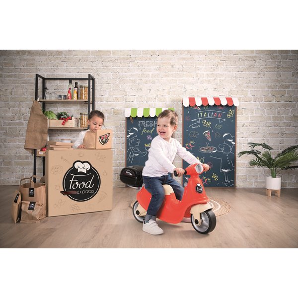 Jeździk to ogromna atrakcja dla każdego dorastającego maluszka! Wybierz skuter Retro z bagażnikiem Dostawca jedzenia marki Smoby i pomóż maluszkowi wcielić się w sympatycznego pracownika firmy kurierskiej.