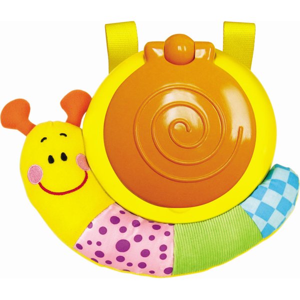 Gdy maluch zajrzy pod skorupkę ślimaka ujrzy lusterko, na którym wyświetlają się kolorowe elementy - z pewnością wzbudzą zachwyt dziecka.Jest też pianinko i kolorowe guziczki. Kryją się tu wesołe dźwięki i melodie.Pluszowy ślimak będzie rozwijał zmysł dotyku dziecka, a melodie wpłyną pozytywnie na rozwój słuchu.