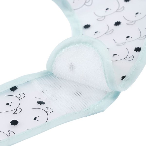 Śliniak wykonany jest z wysokiej jakości wodoodpornego tworzywa, które doskonale zabezpiecza ubranie przed zabrudzeniem i czyni śliniak nieprzemakalnym. Idealny do karmienia maluszka, jak i pierwszych samodzielnych posiłków. Dodatkowa kieszonka na dole śliniaka zatrzyma spadające resztki jedzenia. Wygodne i praktyczne zapinanie na rzep podnosi komfort noszenia śliniaka, a motyw z przeurocza surykatką umilą dziecku posiłek.