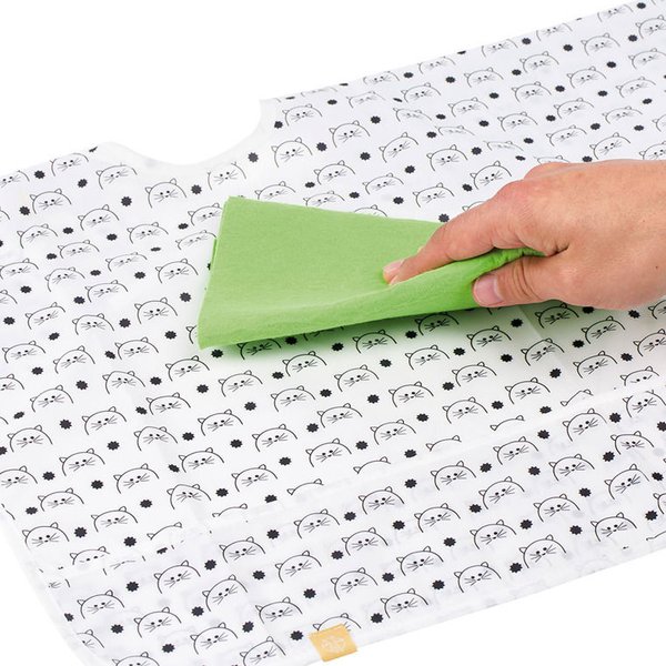 Śliniak wykonany jest z wysokiej jakości wodoodpornego tworzywa, które doskonale zabezpiecza ubranie przed zabrudzeniem i czyni śliniak nieprzemakalnym. Idealny do karmienia maluszka, jak i pierwszych samodzielnych posiłków. Dodatkowa kieszonka na dole śliniaka zatrzyma spadające resztki jedzenia. Wygodne wiązanie na tasiemki podnosi komfort noszenia śliniaka, a ciekawy motyw umilą dziecku posiłek.