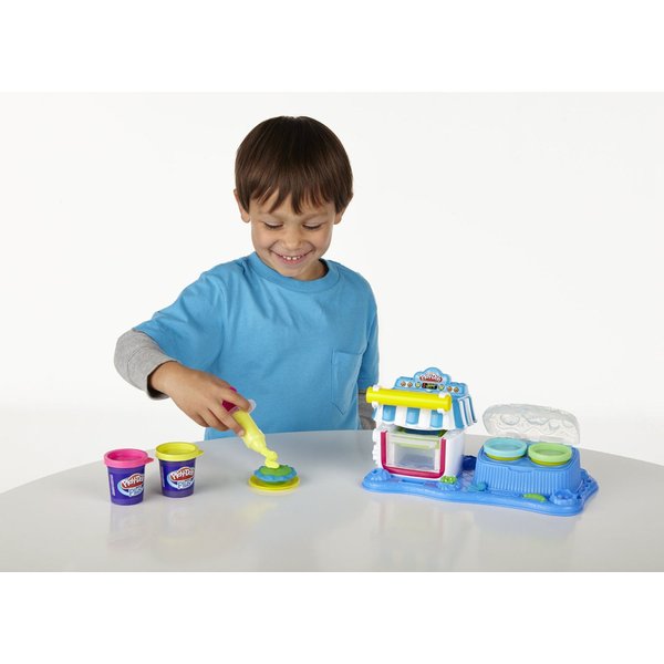 Kuchenka pełna słodkości to zestaw, który pozwoli tworzyć wspaniałe babeczki i urządzić wystawne przyjęcie! Dzięki dołączonym akcesoriom można stworzyć muffinki, babeczki, ciasteczka i ozdobić je kolorowymi dekoracjami. Całość można "upiec" w kuchence "dzyń" i gotowe do podania!