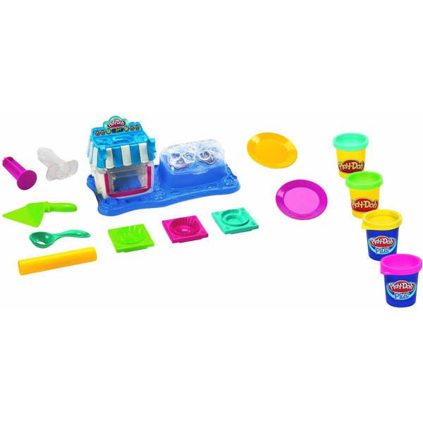 W zestawie maluch odkryje akcesoria do tworzenia kształtów oraz ciastolinę w różnych kolorach.
