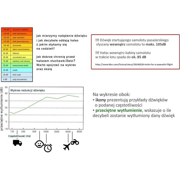 Ochronne nauszniki dla dzieci BANZ to wygłuszające słuchawki ochronne dla dzieci od urodzenia do 3 lat. Nauszniki są bardzo lekkie i posiadają pałąk z wygodną regulacją. Produkt ten to idealne rozwiązanie na różnego rodzaju eventy, koncerty czy mecze, gdzie w normalnych warunkach słuch naszego dziecka może być narażony. Słuchawki przeznaczone dla ochrony słuchu malucha - brak możliwości podłączenia ich do urządzeń multimedialnych. Pamiętajmy o tym, iż nawet najmniejszy uszczerbek słuchu naszego malucha może być już nieodwracalny.
