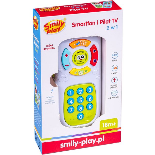 Maluchy zawsze bardzo lubią naśladować dorosłych. Podaruj swojemu dziecku gadżet wspierający jego rozwój i dający mu dużo radości - dziecięcy Smartfon/Pilot TV od Smily Play - zabawkę 2 w 1. Z jednej strony maluch będzie miał smartfon, zaś z drugiej - pilot do telewizora, aby mógł poczuć się jak dorosły! Produkt ten jest w pełni bezpieczny dla dziecięcego ucha, dlatego bez obaw maluch może go trzymać blisko swojej głowy. Zabawka wydaje różne dźwięki i melodie, których głośność można regulować, ma piękny dotykowy ekran i mówi po polsku.