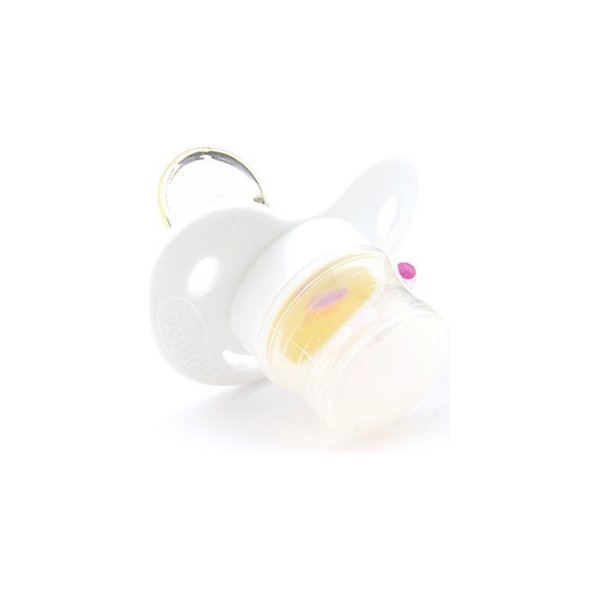 Smoczek posiada specjalną komorę z podziałką zamiast standardowego uchwytu. Do środka należy wlać odpowiednią dawkę syropu lub innego lekarstwa w płynie (według zalecenia lekarza). Ssąc smoczek maluszek będzie jednocześnie pobierał lek. Dzięki ruchomemu suwakowi wewnątrz komory można zmienić intensywność wypływu lekarstwa w zależności od potrzeb dziecka.