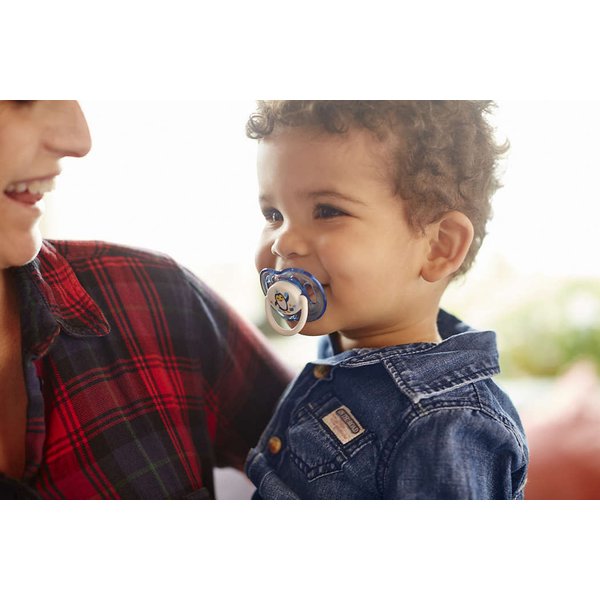- 2 sztuki smoczka w rozmiarze +18 miesięcy, całość zamknięta w przeźroczystym etui.