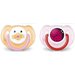 - 2 sztuki smoczka w rozmiarze 6-18 miesięcy, całość zamknięta w przeźroczystym etui.