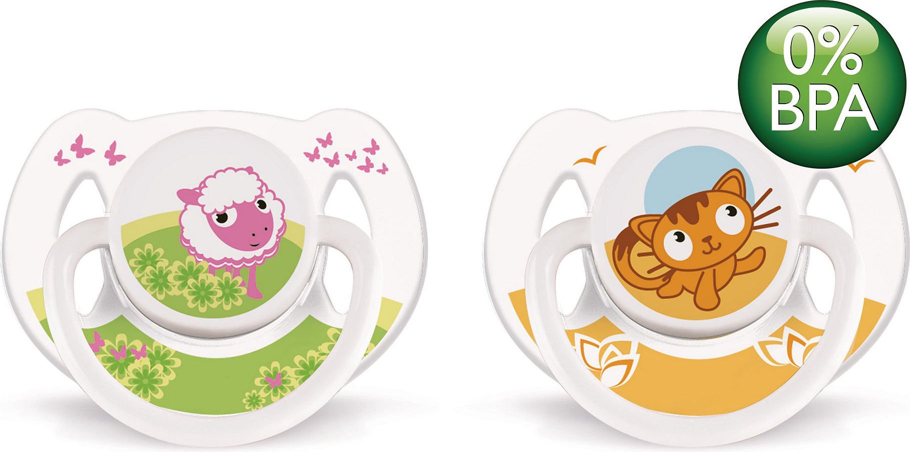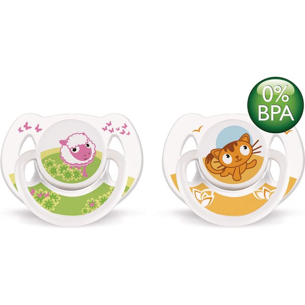 • 2 sztuki smoczka w rozmiarze 6-18 miesięcy, całość zamknięta w przeźroczystym etui.