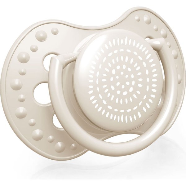 Ten model smoczka został opracowany specjalnie z myślą o potrzebach najmłodszych dzieci. Jego gumka została wykonana z całkowicie bezpiecznego i trwałego silikonu spożywczego, który kurczy się i rozszerza, dopasowując do rytmu ssania maluszka. Jego kształt inspirowany jest brodawką sutkową mamy, aby był całkowicie bezpieczny dla zgryzu oraz rozwoju mowy niemowlęcia. Otwory w tarczce smoczka umożliwiają swobodny przepływ powietrza, aby maluszek nie musiał się zmagać z odparzeniami i podrażnieniami.