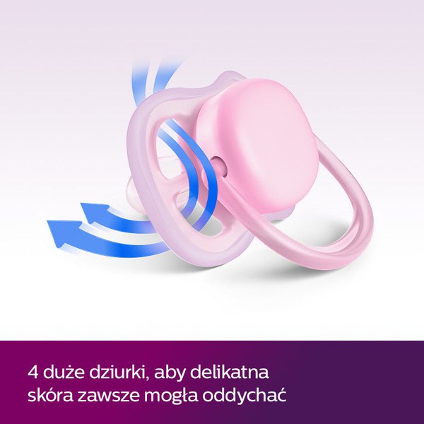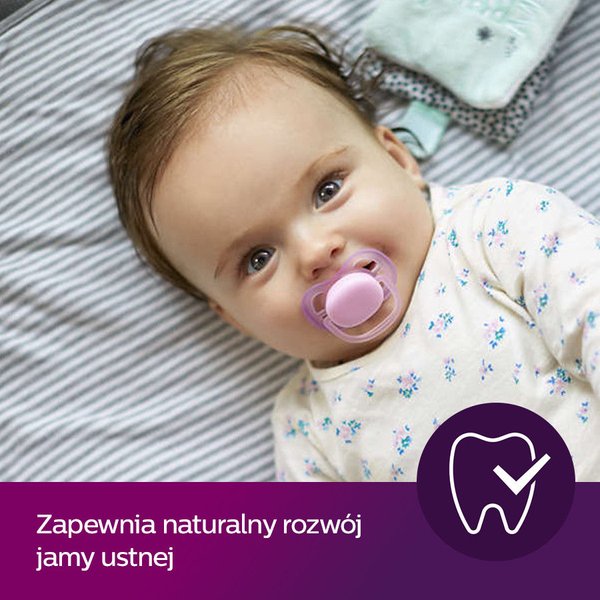 - Ortodontyczny, symetryczny i miękki smoczek - Płaskie smoczki Philips AVENT w kształcie kropli opracowano z dbałością o naturalny rozwój podniebienia, zębów i dziąseł dziecka. Spełniają te wymagania, nawet jeśli smoczek obróci się w buzi.