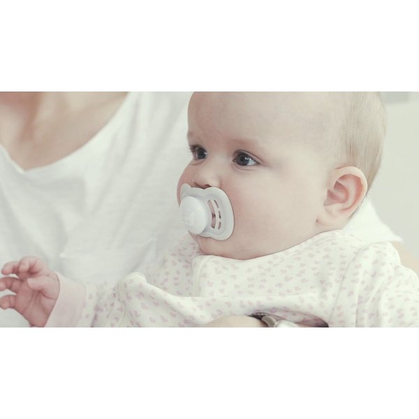 Symetryczny, ortodontyczny kształt. Anatomiczny kształt smoczka gwarantuje naturalny rozwój uzębienia u Twojego dziecka. Symetryczny kształt daje pewność, że smoczek zawsze jest prawidłowo używany.