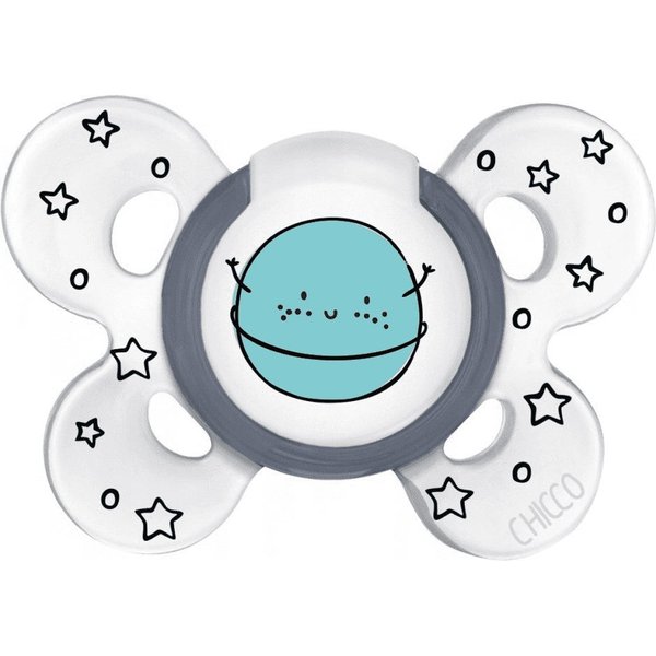 Smoczek Chicco jest bardzo lekki, co sprawia, że nacisk na buzię dziecka jest minimalny. Ergonomiczna, specjalnie wyprofilowana tarczka smoczka, zapewnia miejsce dla noska i brody noworodka, a otwory wentylacyjne zapewniają swobodną cyrkulację powietrza.