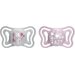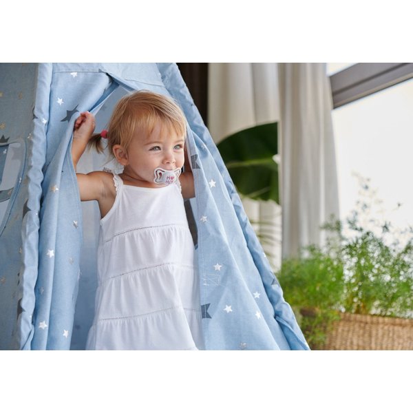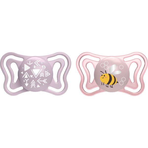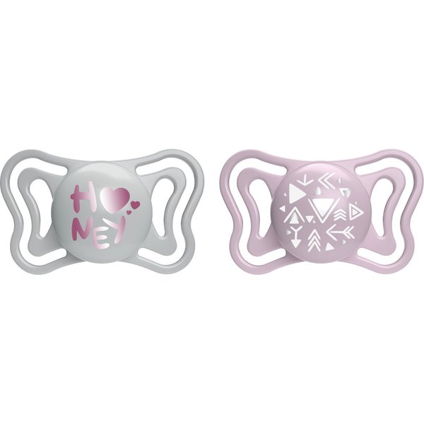 Smoczek posiada końcówkę silikonową typu Soft Sense, aksamitną w dotyku i przypominającą maluszkom pierś mamy. Jej kształt nie zaburza prawidłowego rozwoju jamy ustnej, odpowiedniego ułożenia języka (do przodu) oraz oddychania. Końcówka jest miękka, bezsmakowa i bezzapachowa oraz odporna na uszkodzenia. Praktyczne etui dołączone do smoczków pozwoli Ci na ich higieniczne przechowywanie i sterylizację.