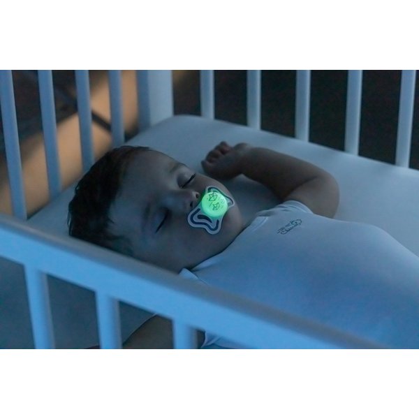 Smoczek świeci w ciemności, dzięki czemu łatwo możesz go znaleźć w nocy bez konieczności zapalania lampki lub używania latarki. Praktyczne etui dołączone do smoczków pozwoli Ci na ich higieniczne przechowywanie i sterylizację.