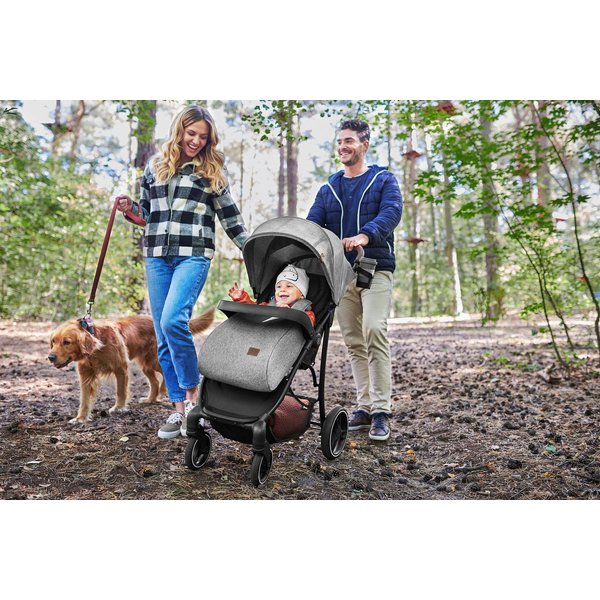 Wózek spacerowy Cruiser z ulepszoną amortyzacją sprawi, że wasze spacery będą niezwykle przyjemne! Aby dodać komfortu podczas jazdy został on wyposażony w duże, gumowe koła, które są odporne na ścieranie i stanowią dodatkową amortyzację. To wszystko sprawia, że wózek poradzi sobie na każdej powierzchni. Głęboka budka sprawia, że możecie spacerować w każdą pogodę ponieważ chroni ona przed słońcem i wiatrem. Rączka została wyposażona w blokadę przed złożeniem wózka, a centralny hamulec stop & go pozwoli łatwo zablokować i odblokować koła.
