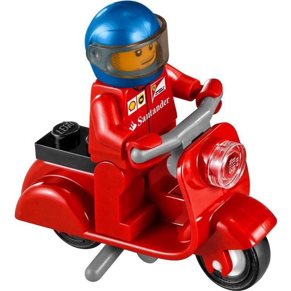 Zestaw Ciężarówka F14 T & Scuderia Ferrari dostarczy niesamowitej frajdy każdemu miłośnikowi czterech kółek. Zbuduj ogromną ciężarówkę do przewozu bolida F14 wyposażoną w wiele niezbędnych narzędzi. Opuść rampę i załaduj samochód na naczepę, później posadź kierowcę ciężarówki oraz kierowcę formuły w kabinie i ruszaj na wyścig.