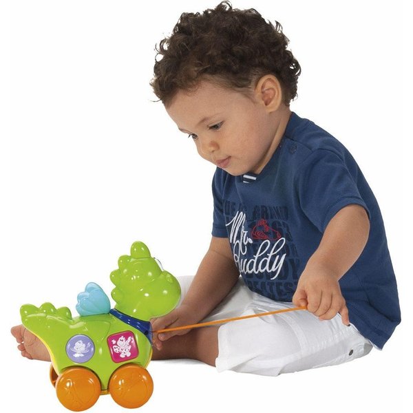 Dodatkowo przy każdym pociągnięciu za sznurek sympatyczny smok radośnie kiwa głową w prawo i lewo, zabawiając naszego malca.