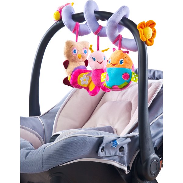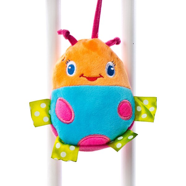 Kolorowa zawieszka spirala z uroczym motylkiem zaciekawi maluszka podczas zabawy w łóżeczku, czy jazdy samochodem.