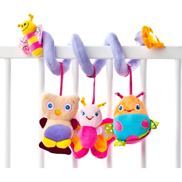 Uniwersalną spiralkę można zwiesić na łóżeczku szczebelkowym, nosidełku, czy wózku.