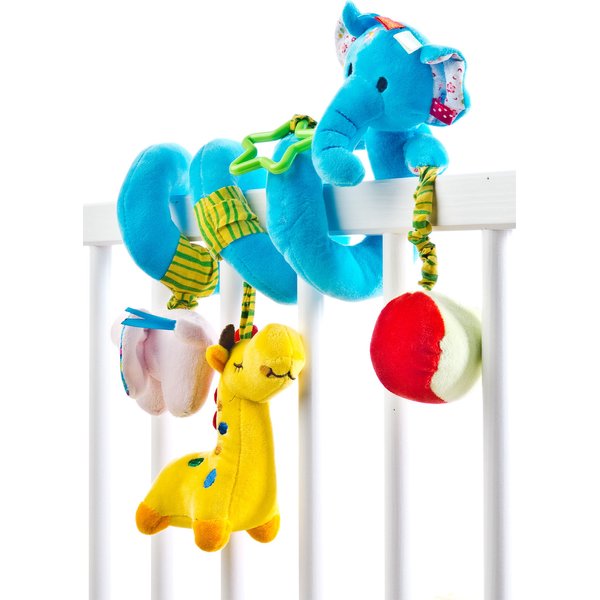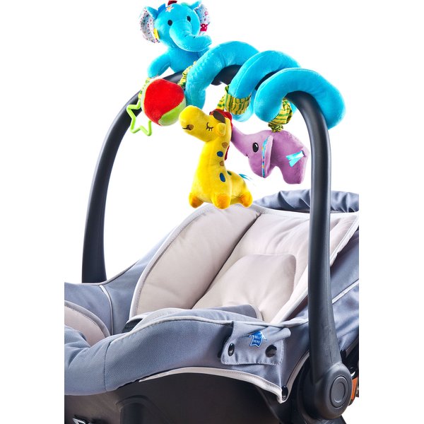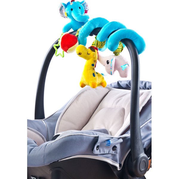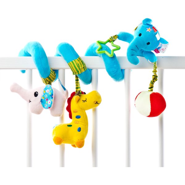 Uniwersalną spiralkę można zwiesić na łóżeczku szczebelkowym, nosidełku, czy wózku.