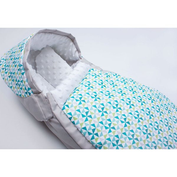 Ciepłe okrycie dla malucha sprawdzi się, kiedy za oknem zimno. Śpiworek można wykorzystać do okrycia malucha we wózku, ale również do otulenia go podczas noszenia w nosidełku. Okrycie składa się z 3 części: kołderki, kapturka i poduszki w kształcie motylka. Wykonany został z przyjemnego w dotyku materiału minky, a zewnętrzny materiał jest nieprzemakalny. Śpiworek łatwo zamontować w siedzisku - otwory na pasy stabilizują go i zapobiegają zsuwaniu się z siedziska. Zapinany na zamek, daje możliwość łatwego dostania się do dziecka.