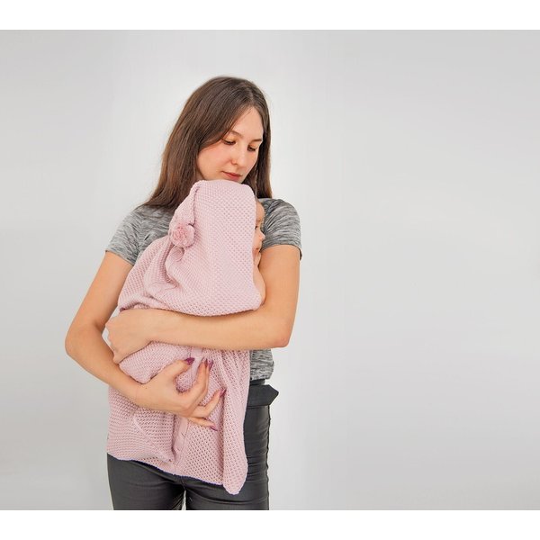 - przybliżone wymiary: szer. 40 cm, dł. zapiętego śpiworka: 50 cm, dł. całego kocyka od kapturka do dołu: 80 cm