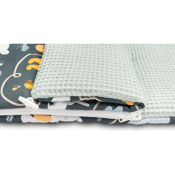 - 4 warstwy: wzorzysta bawełna, ortalion, silikonowa otulina, wafel,