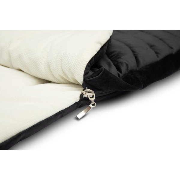 Trójwarstwowy model śpiworka obszyty został nieprzemakalną, pikowaną tkaniną. Wnętrze ocieplone jest antyalergiczną włókniną oraz puszystym materiałem typu velvet, bardzo miękkim i przyjaznym dla delikatnej skóry. Śpiworek posiada otwory na pięciopunktowe pasy bezpieczeństwa, co jest szczególnie istotne w przypadku ruchliwego maluszka podróżującego w spacerówce. Śpiworek ten wykorzystasz także w gondoli oraz na sankach.