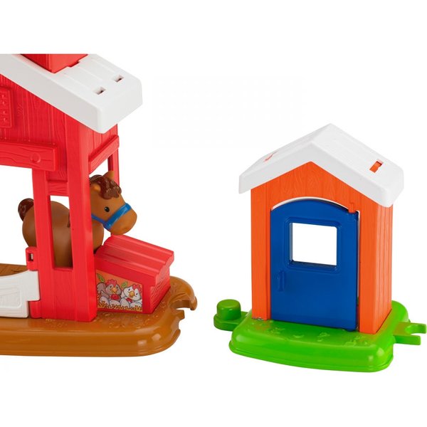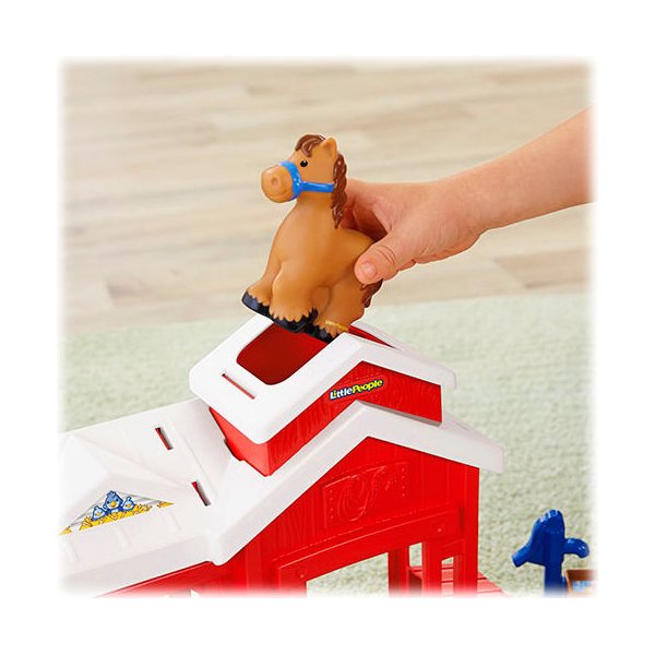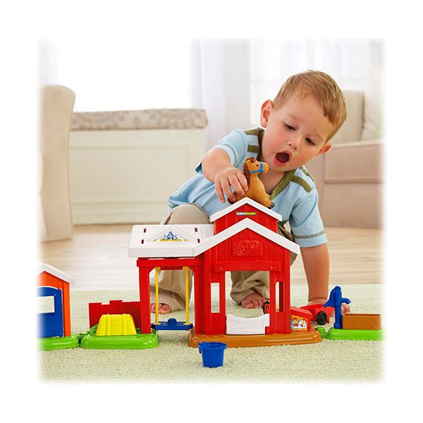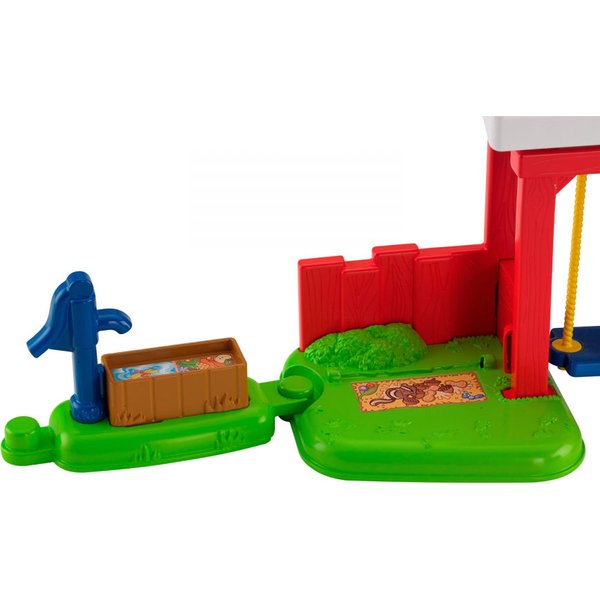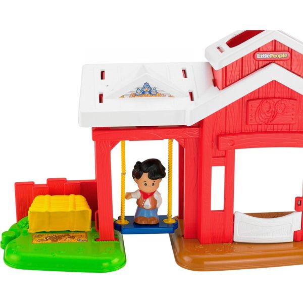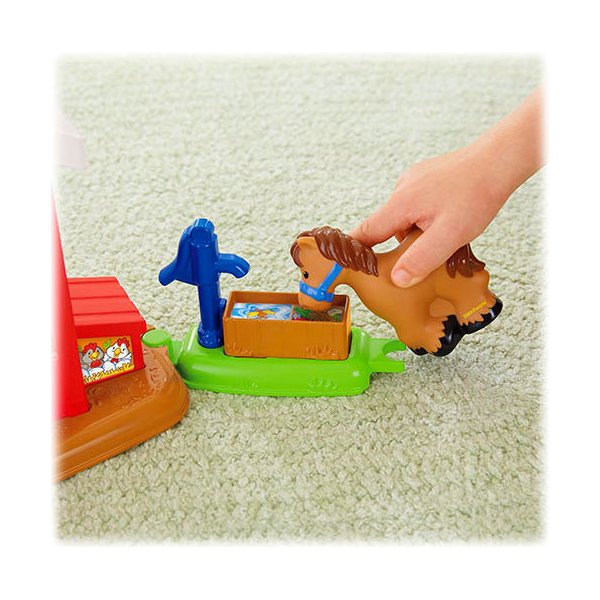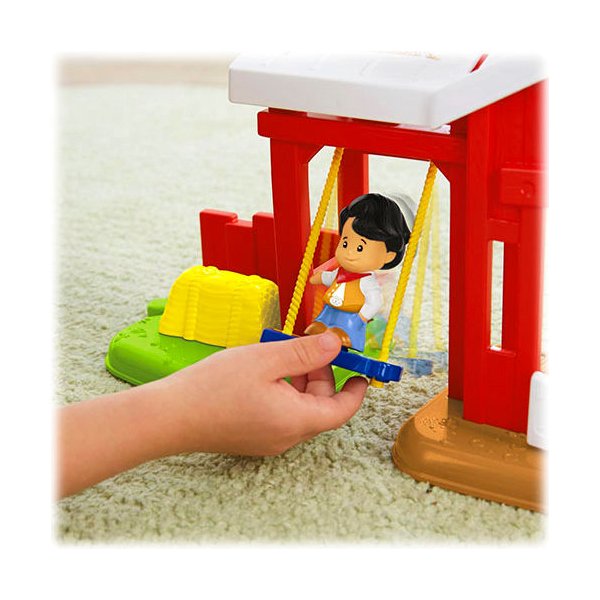 Otwieranie i zamykanie drzwiczek, bujanie małego bohatera na huśtawce czy umieszczanie konika w stajni lub wokół niej to świetny trening dla małych rączek.