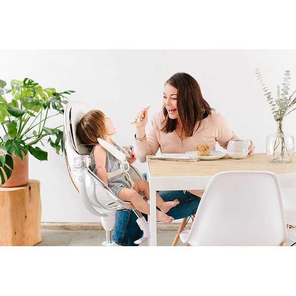 Stelaż krzesełka Fresco Chrome marki Bloom to połączenie stabilizacji z wygodą oraz wysokiej funkcjonalności. Zamontowana tacka na posiłek posiada również łatwą możliwość demontażu, dlatego wszystko jest bardzo proste w utrzymaniu czystości. Do tego stelaż jest regulowany zarówno pod kątem pozycji w jakiej znajduje się dziecko jak i pod kątem wysokości siedziska oraz podpórki na stopy.