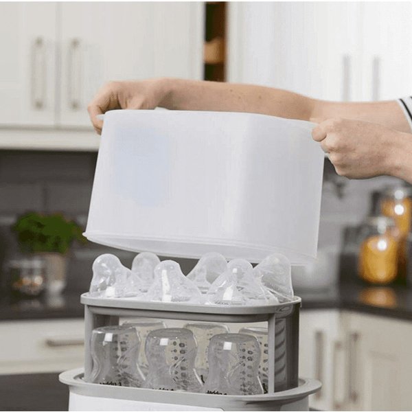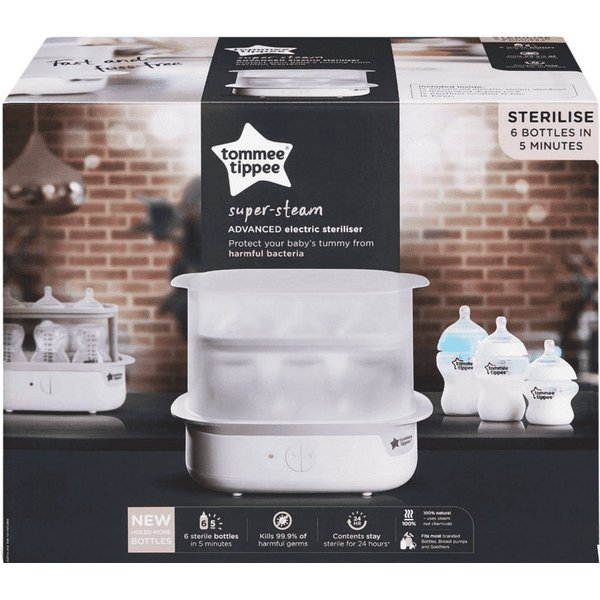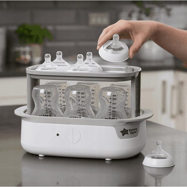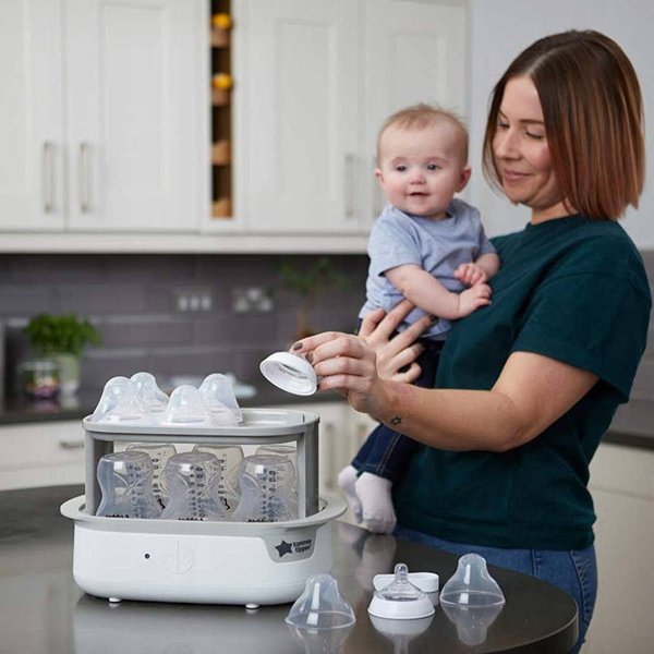 Elektroniczny sterylizator od Tommee Tippee pozwoli na pozbycie się ok 99,9% zarazków. Dzięki temu delikatne brzuszki maluszków będą chronione przed bakteriami. Pozwala on sterylizować 6 butelek jednocześnie, a to wszystko w jedyne 5 minut! Jest gotowy do działania o każdej porze, więc wysterylizowana butelka będzie zawsze w pogotowiu.
