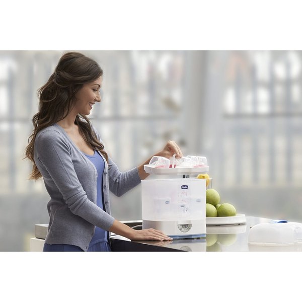 Wielofunkcyjny sterylizator 2w1 od Chicco pomoże zadbać o najwyższą higienę i bezpieczeństwo maluszka.