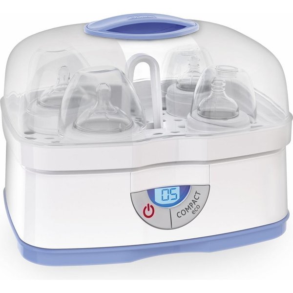 Został opracowany z myślą o maksymalnym ułatwieniu sterylizacji. Regulowana wielkość pozwala oszczędzić miejsce. Dzięki możliwości regulacji rozmiaru zajmuje on mniej miejsca w kuchni, a kosze pasują zarówno do butelek z szeroką, jak i wąską szyjką.