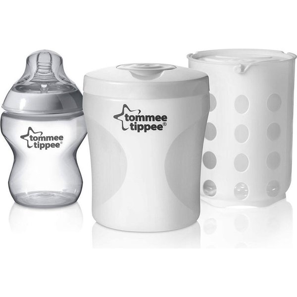 Sterylizator na jedną butelkę Tommee Tippee Closer to Nature® jest lekki, kompaktowy, szybki, elegancki i łatwy w obsłudze. Mieści jedną butelek oraz akcesoria do niej. Cykl sterylizacji trwa ok. 3 minuty, w zależności od ustawienia mocy mikrofalówki. Przy zamkniętej pokrywie akcesoria pozostają sterylne przez 24 godziny. Sterylizator nie zawiera bisfenolu A (BPA). Wygodny do użycia w domu i w podróży.