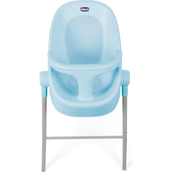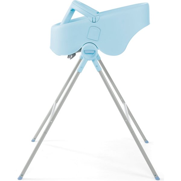 Stojak kąpielowy to bardzo przydatny przedmiot do bezpiecznej i wygodnej kąpieli maluszka. Przeznaczony jest dla maluchów od urodzenia do 12 miesięcy. W pierwszej kolejności kąpiemy malucha w pozycji leżącej (0-6m), jednak gdy podrośnie, możemy zmienić pozycję krzesełka i kąpać malucha w pozycji siedzącej (6-12m). Wnętrze wanienki pokryte jest miękkim i antypoślizgowym materiałem, a siedzisko w kształcie literki "T" zabezpiecza malucha przed wysunięciem się. Przyssawki na nóżkach pozwalają na stabilne przymocowanie krzesełka do powierzchni. Nóżki krzesełka są regulowane.