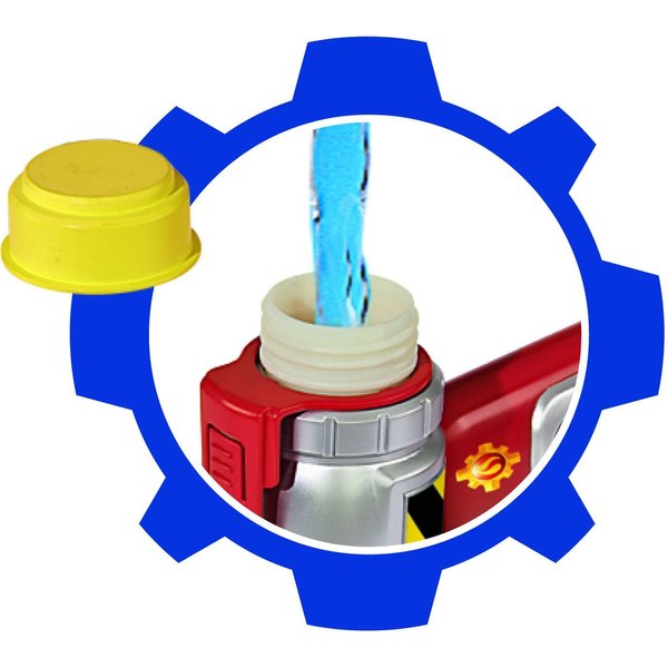 Zabawka naprawdę psika wodą! Wlej wodę do zbiorniczka i naciśnij żółty przycisk, a woda wystrzeli z gaśnicy - ale frajda!