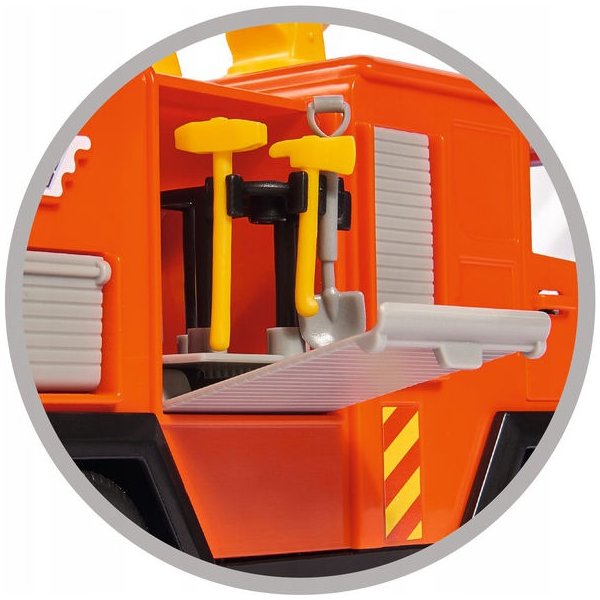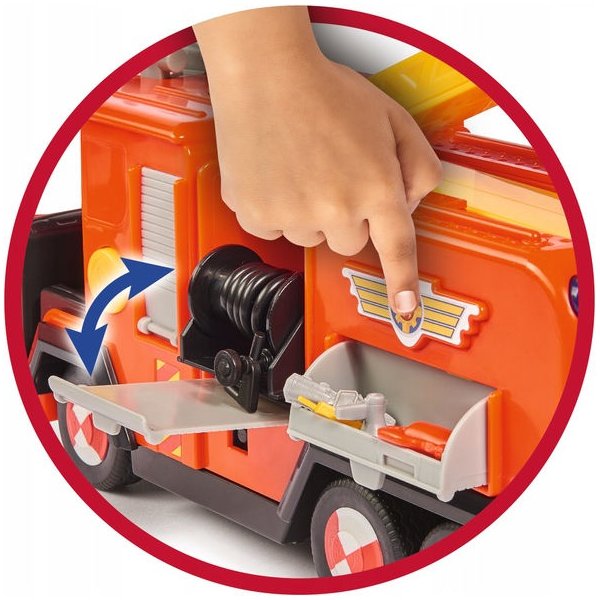 W miasteczku wybuchł pożar, musisz szybko dostać się na miejsce. Wyrusz wozem na miejsce akcji wraz z Elvisem! Wóz wygląda dokładnie tak jak w bajce! Dzięki wielu atrakcjom zabawa nigdy się nie znudzi. Pojazd został wyposażony w otwierane drzwi kabiny oraz hak do holowania. Uruchom dźwięk syren za pomocą przycisku na dachu, a zabawa stanie się jeszcze bardziej realistyczna!