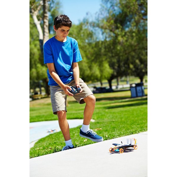Zabawka posiada dwa 8 mm silniczki oraz 2 śmigła, które obracają się ponad 35 tys. razy na minutę, co umożliwia odlotowej wyścigówce nie tylko latanie, lecz także wykonywanie różnych manewrów i akrobacji. Street Hawk sterowany jest za pomocą pilota, który służy również do ładowania pojazdu. Dodatkowo pilot posiada specjalny przełącznik, dzięki któremu możemy zdecydować, czy nasza wyścigówka ma się poruszać na lądzie, czy wzbić się w powietrze.