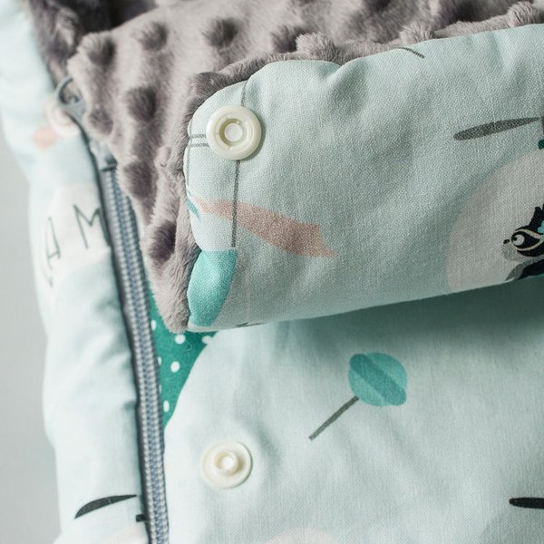 Wykonany z bezpiecznych materiałów, będzie delikatny dla skóry dziecka, chroniąc go jednocześnie przed chłodem. Zewnętrzna część śpiworka została wykonana z nieprzemakalnego materiału, zaś środek wypełniono miękkim polarem minky, który będzie chronił dziecko przed zimnem. W środku na spodzie został wszyty nie przemakalny materiał który uchroni przed dostawaniem się wilgoci od wewnątrz.