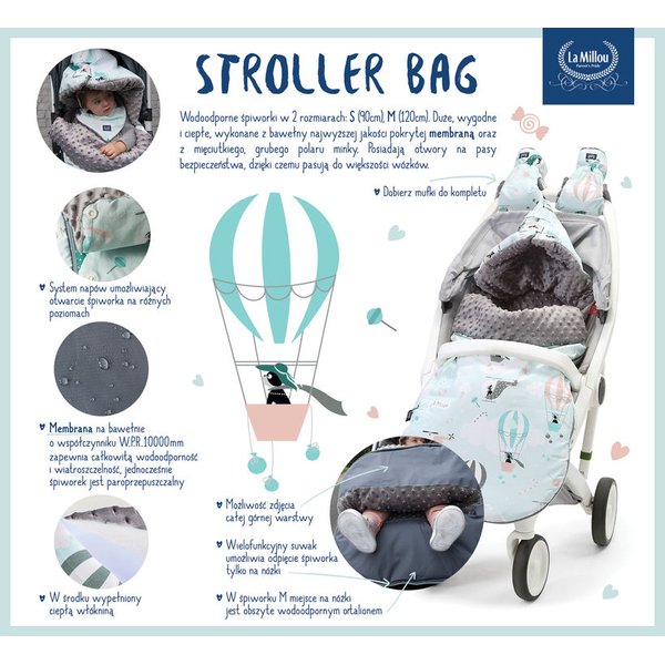 Ciepły i jednocześnie lekki śpiworek do wózka zabezpieczy maluszka w chłodne dni przed niekorzystnymi warunkami atmosferycznymi.