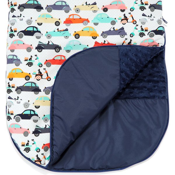 Śpiworek jest zapinany na zamek błyskawiczny, w prosty sposób możesz również otworzyć dolną część dzięki czemu nasz maluch będzie mógł śmiało wystawić nóżki podczas podróży.