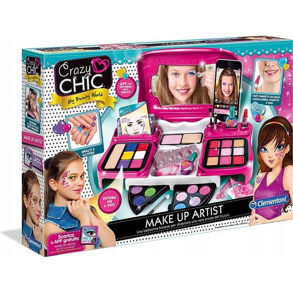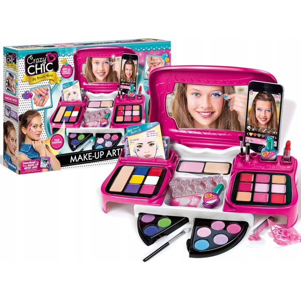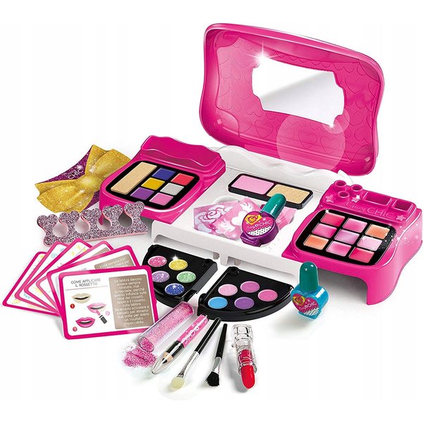Zestaw do makijażu Crazy Chic został wyposażony w niezbędne kosmetyki oraz ozdoby, dzięki którym będziesz błyszczeć w odcieniach glamour! Znajdziesz tu kolorowe cienie do powiek, szminki oraz róże. Ozdób również swoje paznokcie paznokcie pięknymi lakierami! Zestaw wyposażony jest także w farbki do twarzy, dzięki czemu można przejść całkowitą metamorfozę.